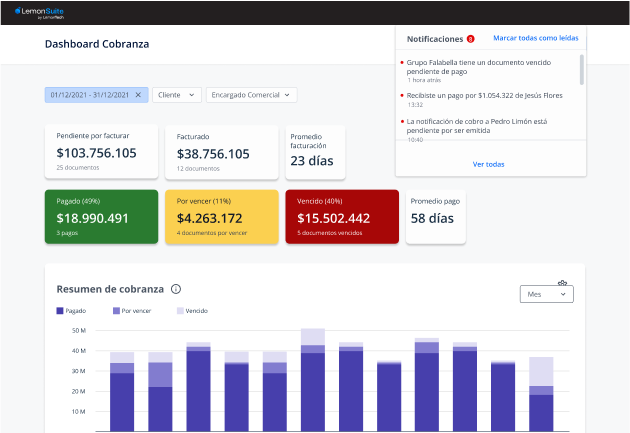 LemonSuite permite gestionar tus notas de cobro, facturas, boletas y pagos en una sola plataforma