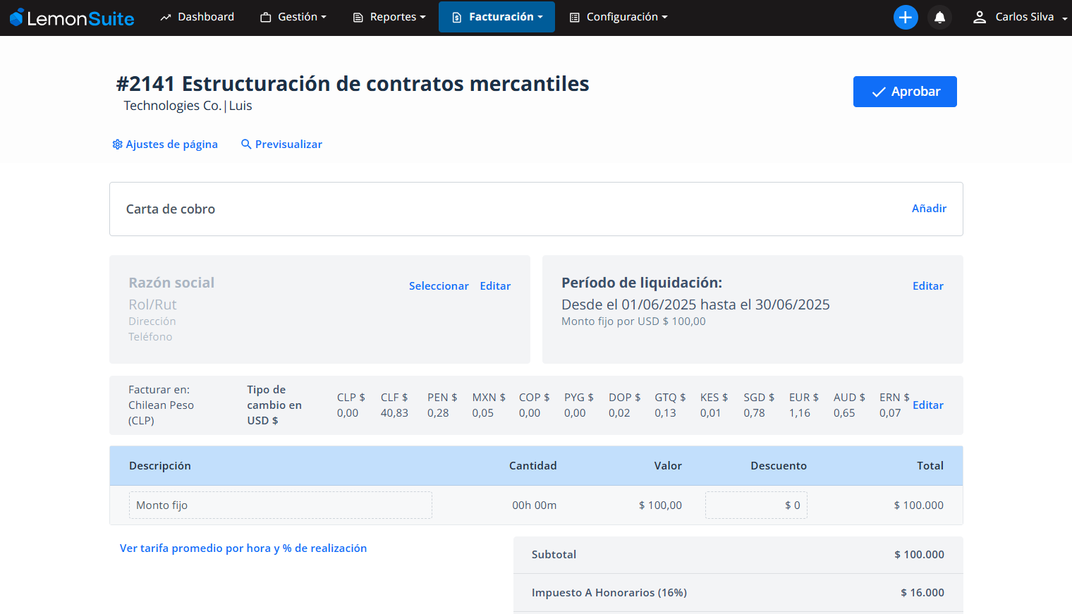 Utiliza distintos tipos de cobro: monto fijo, hitos, horas, igualas, pagos recurrentes o proyectos.
